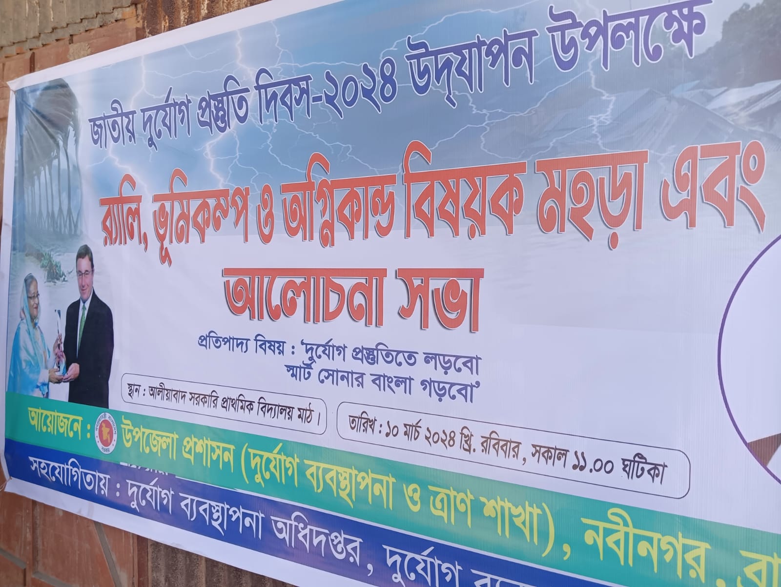১০ মার্চ ২০২৪ তারিখে ‘জাতীয় দুর্যোগ প্রস্তুতি দিবস-২০২৪’ উদযাপন উপলক্ষে দিবসটি যথাযোগ্য মর্যাদায় উদযাপনের লক্ষ্যে উপজেলা প্রশাসন(দুর্যেোগ ব্যবস্থাপনা শাখা) , নবীনগর, ব্রাহ্মণবাড়িয়া কর্তৃক এ উপজেলার আলীয়বাদা সরকারি প্রাথমিক বিদ্যালয়ে ভূমিকম্প ও অগ্নিকান্ড বিষয়ক মহড়া , র্যালী ও উন্মুক্ত আলোচনা সভার আয়োজন করা হয়।